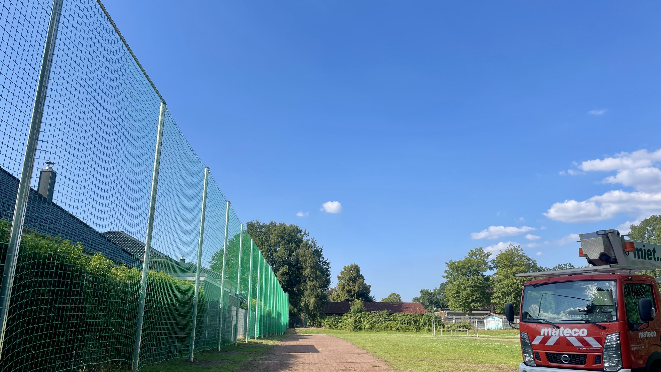 An der Grundschule Stapelfeld wurden die ersten Tage der Sommerferien genutzt, um am Sportplatz einen Ballfangzaun anzubringen. Damit sollen die anliegenden Grundstücke vor Bällen geschützt werden, die vorher leicht auf die Grundstücke gelangt sind.