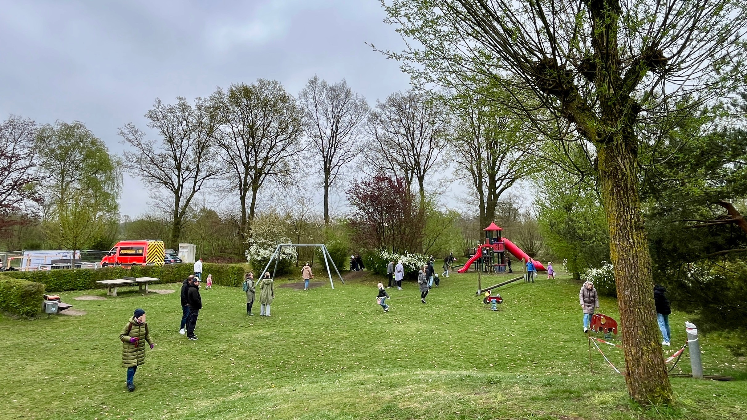 Am Ostersonntag hat die Freiwillige Feuerwehr Stapelfeld zum Osteiersuchen auf den Spielplatz Am Ecksoll eingeladen. Rund fünfzig Kinder mit ihren Familien kamen, um auf dem Spielplatz nach Leckereien zu suchen, dazu gab es Getränke.